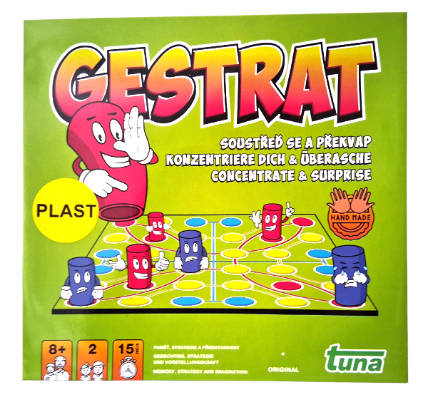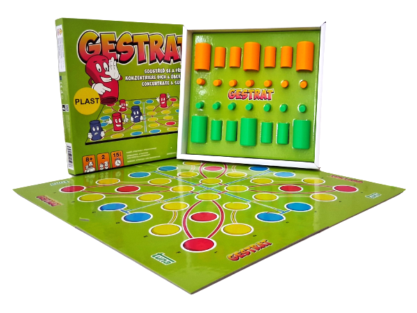 Je to hra, která nepodporuje jen paměť a strategické schopnosti, ale i plošnou prostorovou představivost. Hráč musí mít stále představu o situaci na celé hrací ploše.Každá hra je jiná a nelze si vybudovat nějaký systém k úspěchu. Prohrává hráč, který ztratí přehled nebo zapomene co je zakryté. V této hře se každý hráč snaží dostat své figurky do vítězného obrazce.Ať je to oblouk, čtverec, obdélník, či přímka nebo úhlopříčka.Hráči si mohou sami určit náročnost hry tím, že nějakou konstelaci postavení při hře vynechají. Třeba tím, že nebudou hrát na čtverce a úhlopříčky. Může to být ale i jiný vynechaný útvar. Tím si usnadní způsob hry.Není to hra jen pro děti, ale je velmi vhodná i pro dospělé a seniory. Pro všechny, kdo si chtějí při hře bystřit svou mysl.Návod pro hru Gestrat je přiložen ke hře v těchto jazycích: